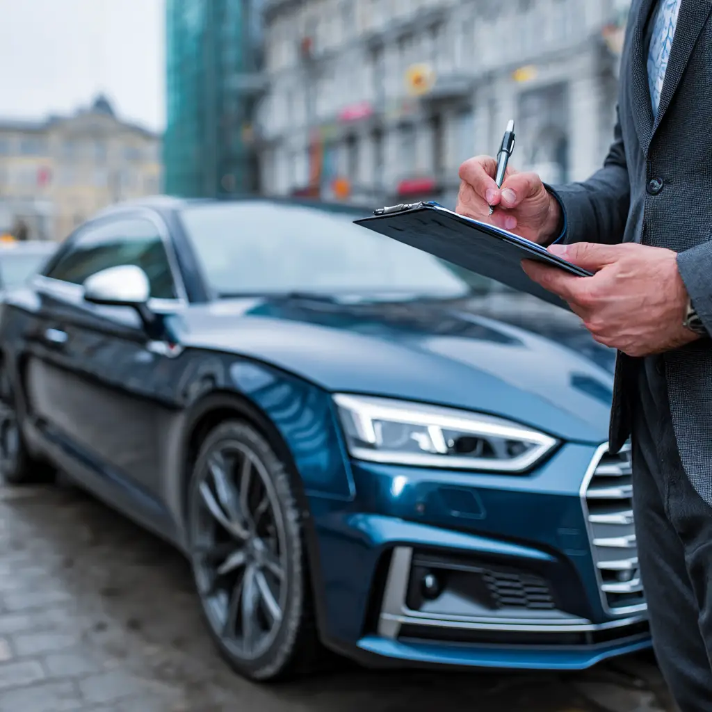 Der Gutachter prüft den Schaden oder ermittelt den Fahrzeugwert professionell und detailliert.